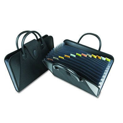- 13-pocket expanding file with briefcase-style handles, 12 color-coded tabbed dividers, soft-sided fabric finish, Velcro® closure and 300 letter-size document capacity.